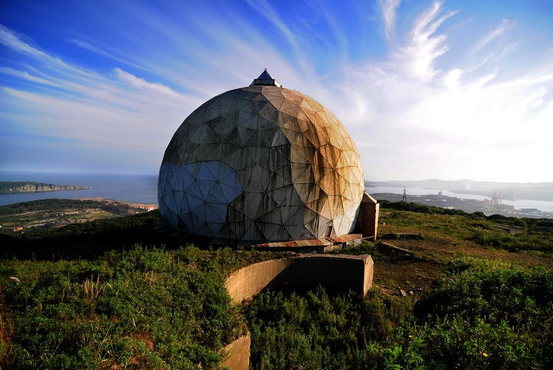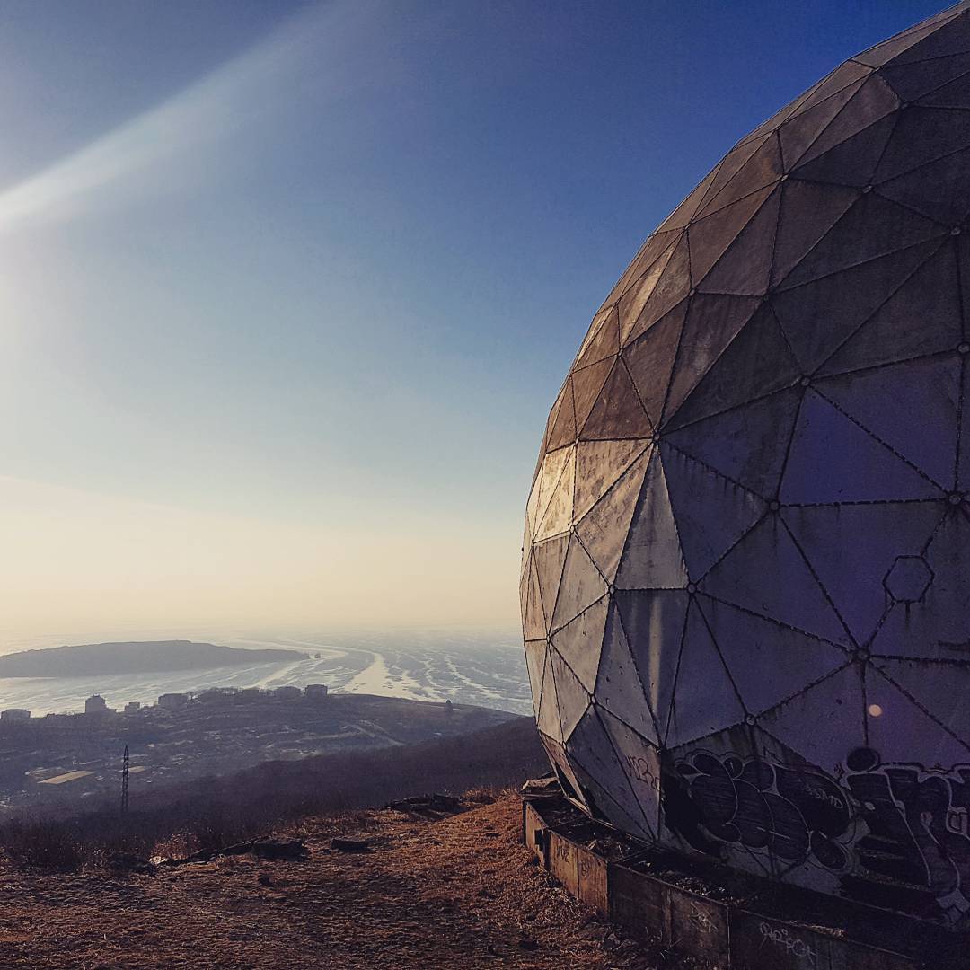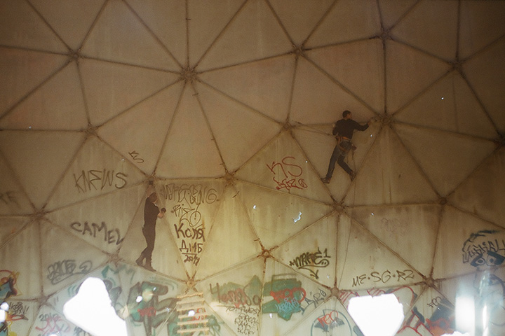 Дорога изгибается в последний раз, и из-за поворота наконец появляется купол — бывший военный объект. Гигантская полусфера, больше всего похожая на дискобол, у которого отпилили основание. Серебряный шар, который прочно впечатался в землю… Акустические искажения внутри купола очень сильные: звук замедляется, как будто дожидаясь, пока его догонит собственное эхо. Внутри купол похож на космос еще больше, чем снаружи.