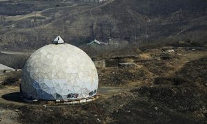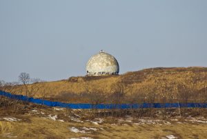 Радиопрозрачный геокупол для радара противовоздушной обороны (в народе “белый шарик”) расположен на вершине горы Монастырская (182 метра над уровнем моря). На данный момент не используется, военными заброшен.