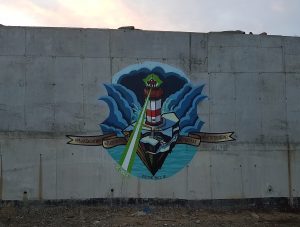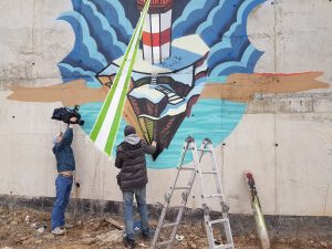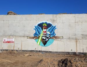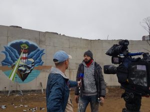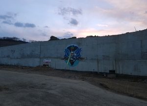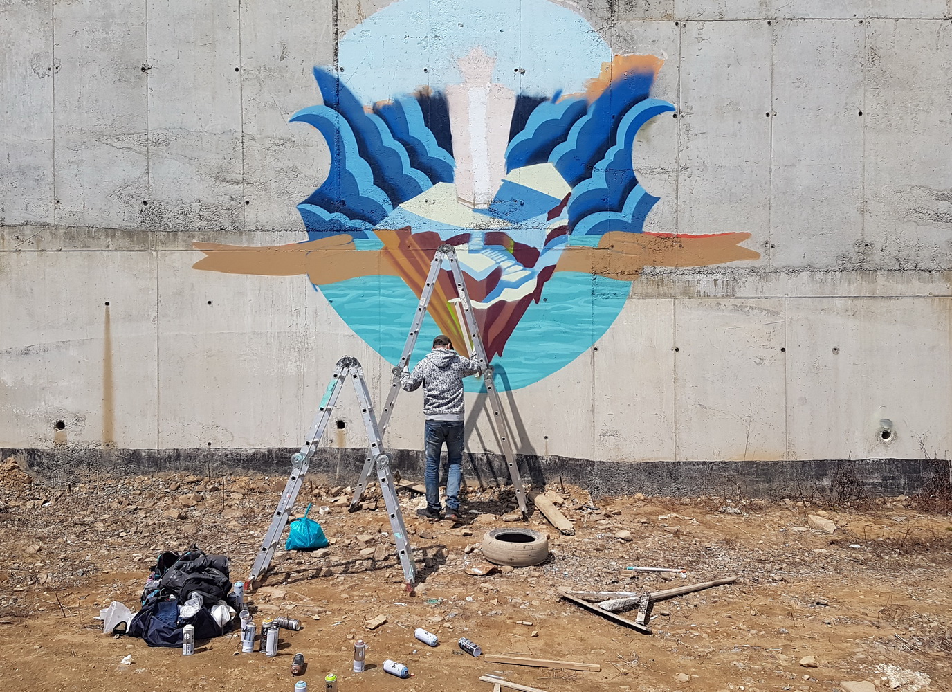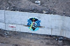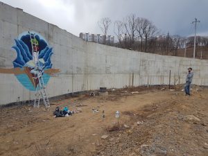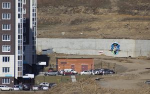 Есть конечно “мелкие” неприятности в виде отсутствия дороги. Инициативная группа из советов домов решила привнести еще немного позитива в нашу жизнь и обратилась к художнику, который нарисует на одной из опорных стенок граффити.