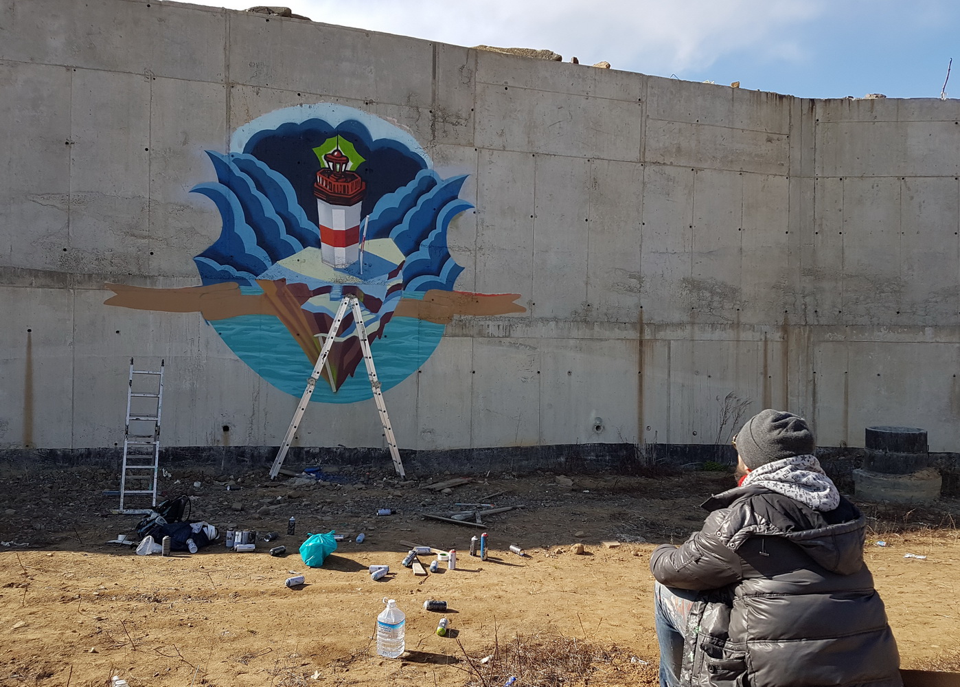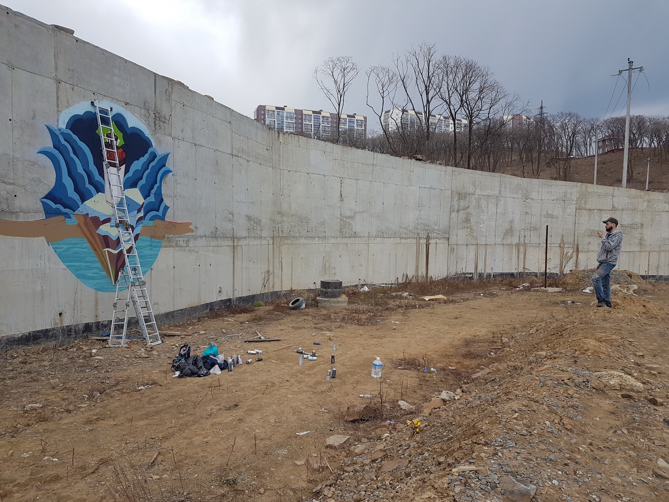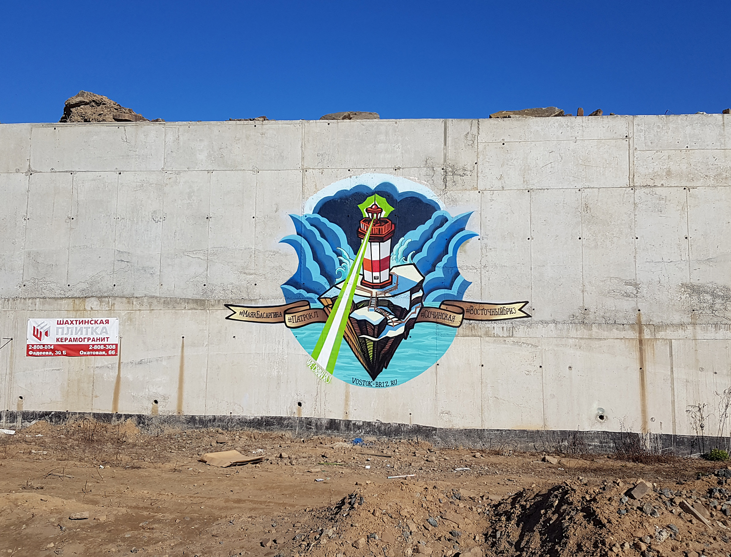 Место размещения: опорная стенка у дороги в точке примыкания улицы Сочинской (у дома №1) к будущей улице Архангельской нового микрорайона у бухты Патрокл во Владивостоке. Правда после примерок место выбрано несколько правее.