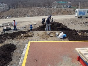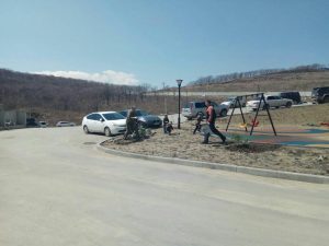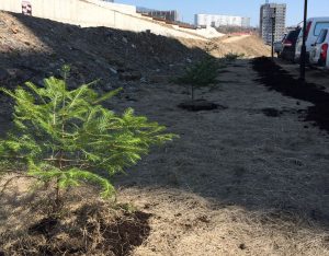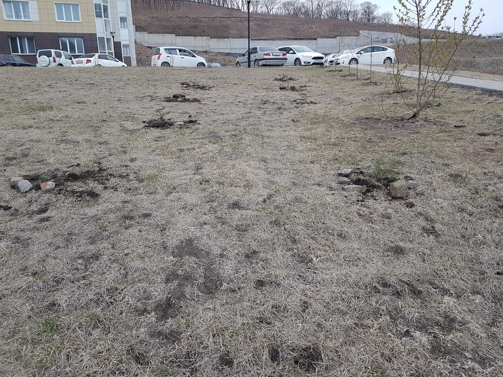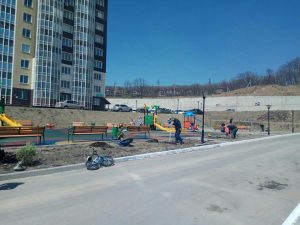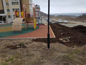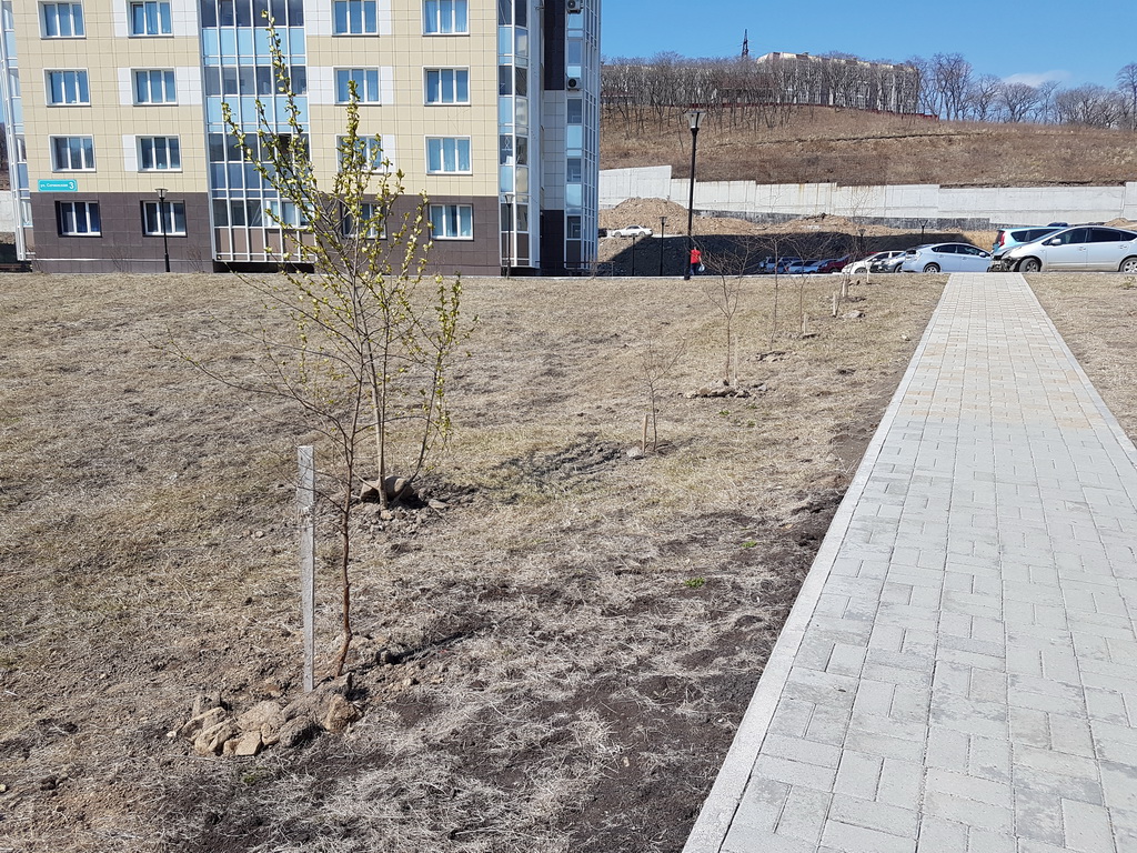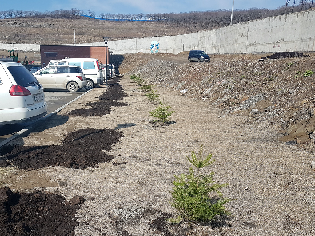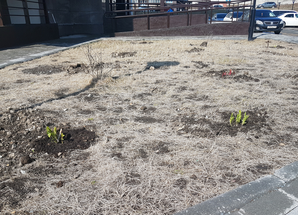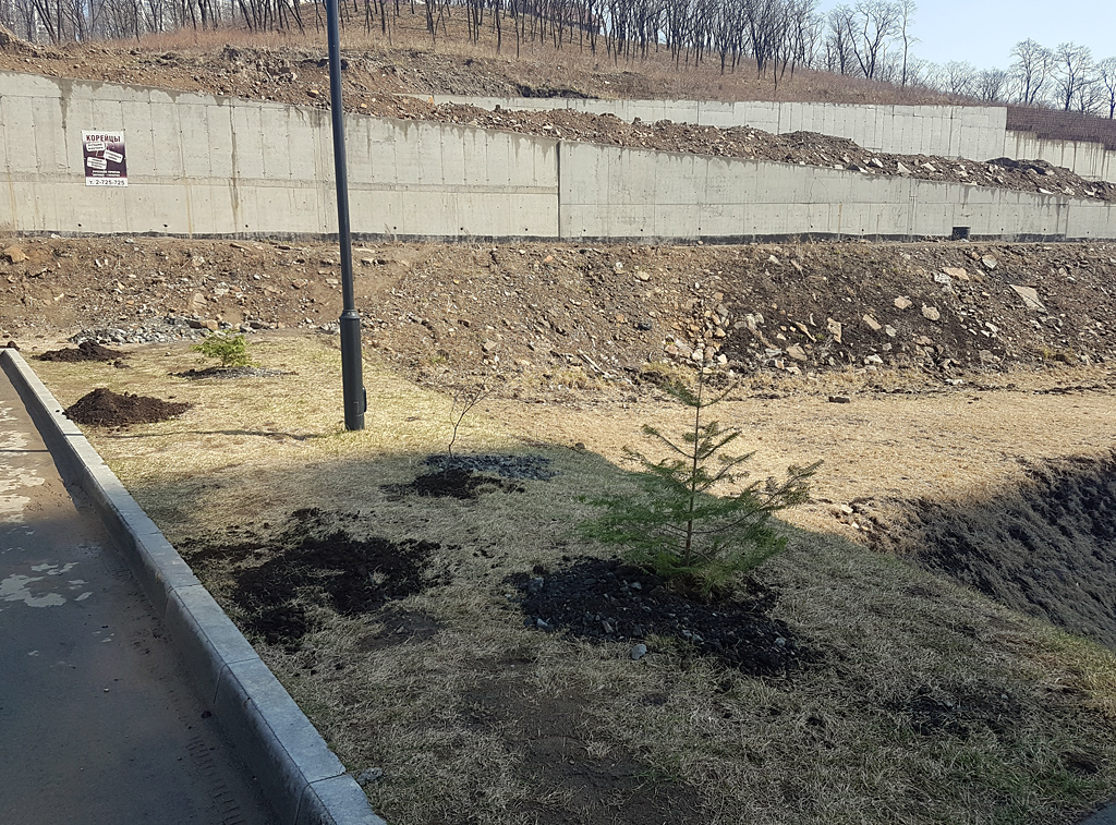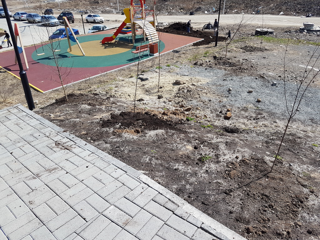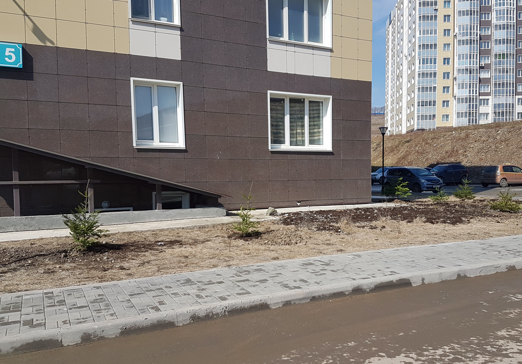Помимо предоставленных управляющей компанией саженцов самостоятельно завезены и посажены 16 маленьких пихт, 2 саженца форзиции, а у детской площадки – 6 кустов сумах.