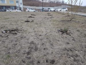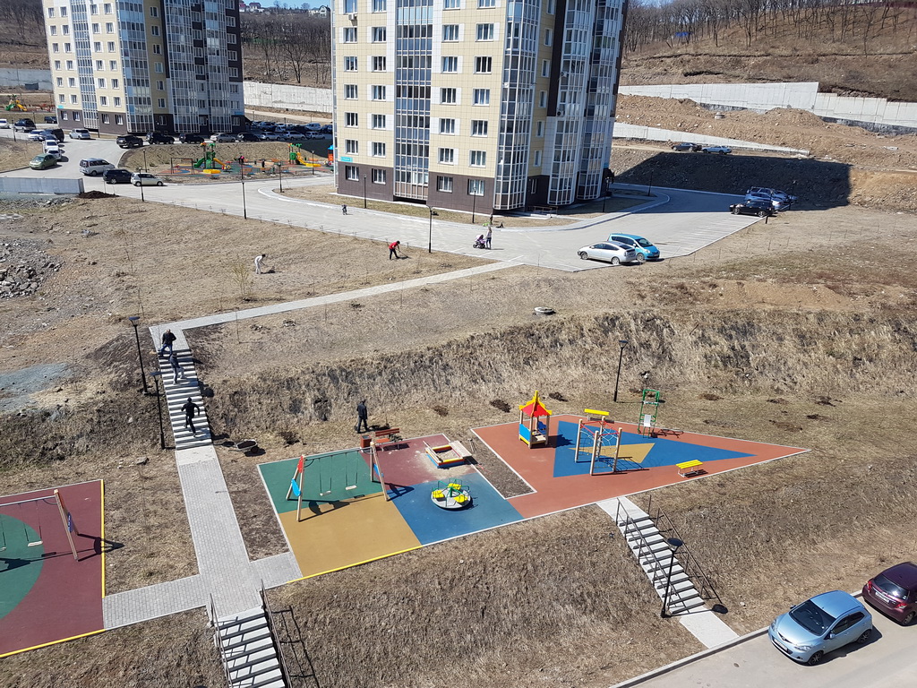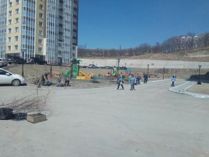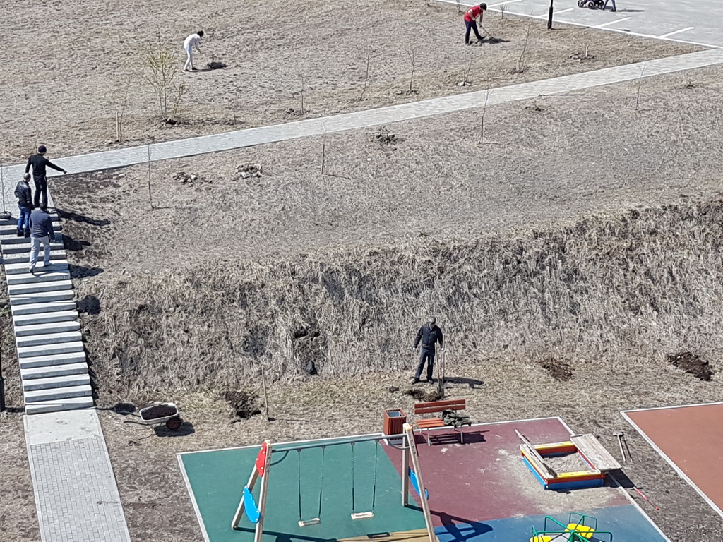 Участвовало порядка 10 человек. Собран мусор на склонах вокруг дома. Посажены 9 пихт, 9 берез и 5 саженцов вишни на прилегающей территории. Склон у детской площадки отсыпан землей для озеленения.