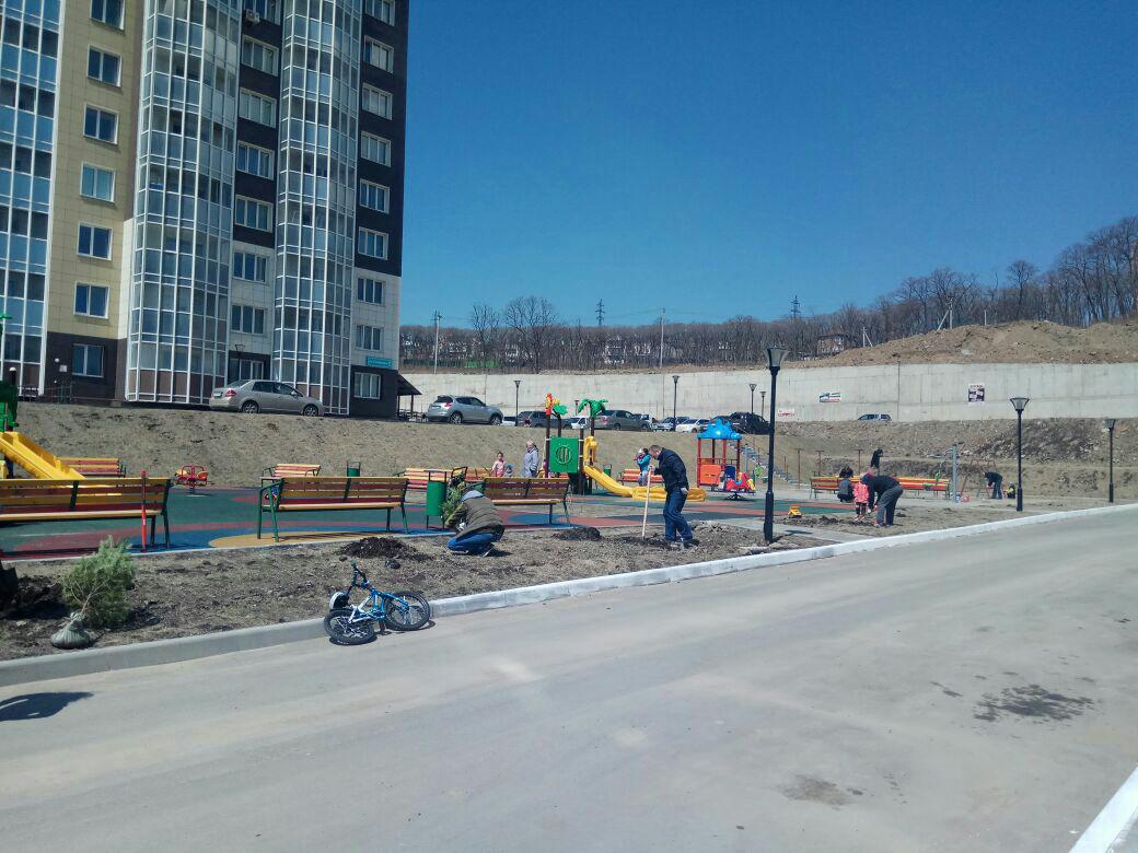 22 апреля на Сочинской как и планировалось состоялся субботник при поддержке управляющей компании МУПВ “Центральный”, которая предоставила инвентарь, землю и саженцы.