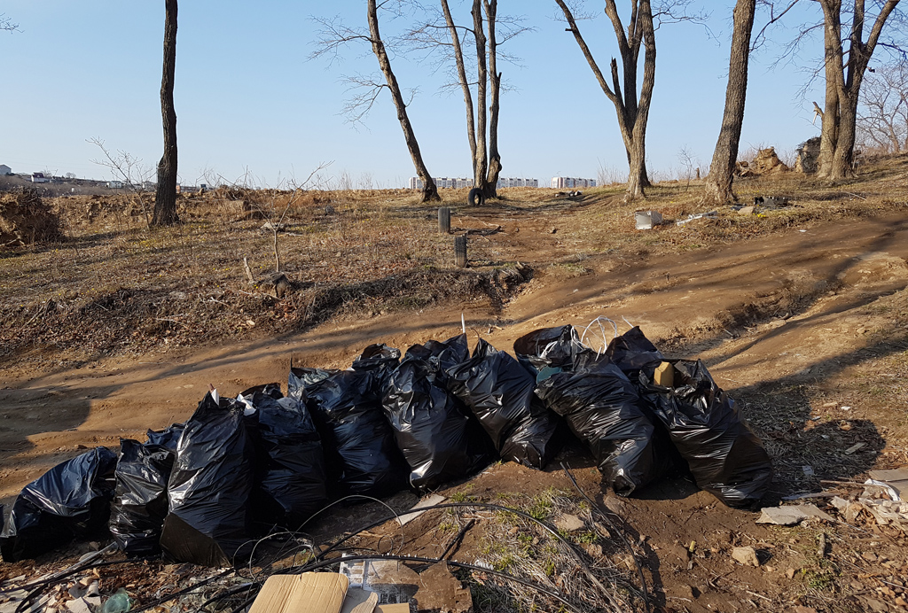 Спонсор пакетов и перчаток – АТУ Первомайского района Владивостока. Мешки с мусором администрация Владивостока обещает вывезти в течение недели.