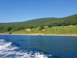 В хорошую погоду из окон домов на улице Сочинской на горизонте можно увидеть отдельный кусочек суши левее полуострова Басаргина – это остров Аскольд.