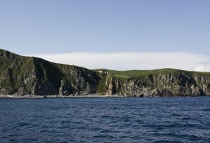 Скалистые берега круто обрываются к морю. В глубоких – местами до 80 метров – прибрежных водах острова очень любят резвиться касатки. Климат на острове отличается своей непредсказуемостью и характеризуется резкими перепадами (от тихой и спокойной погоды до дождя с резким ветром и тумана).