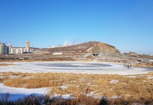 Маленькое, но древнее озеро у бухты Патрокл, прославившееся этим летом в интернете, увы не лотосами, а стекающей в него канализацией раньше было известно другими достоинствами – здесь плавали утки-мандаринки и даже прилетала цапля. Но одна вещь не изменилась после застройки района – это зимние забавы на льду озера.