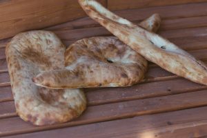 В продаже безумно вкусный и ароматный хлеб: дедис-пури, шотис-пури и кахури (хлеб “сабля”) и конечно же хачапури: мегрельский, имеретинский, аджарский и пеновани. А также традиционные грузинские пироги: мясной кудбари и лобиани – с начинкой из варёной фасоли. А еще здесь продается уже легендарная минеральная вода Боржоми и грузинский лимонад.