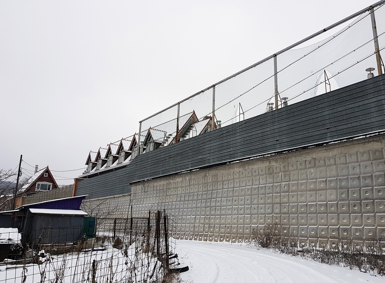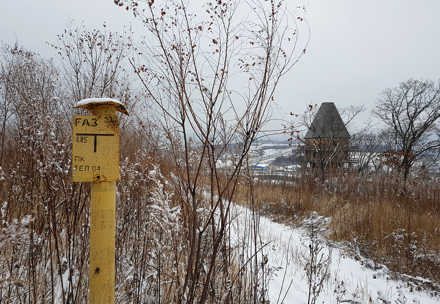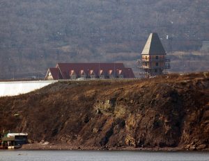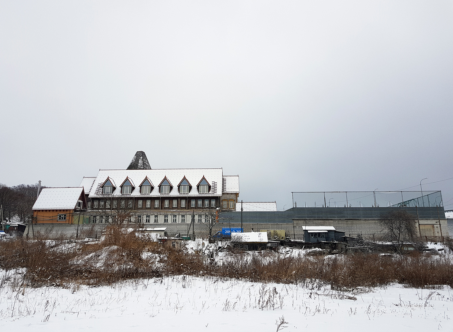 Каждый, кто проезжает по развязке Русский-Патрокл-Чуркин видит необычное строение, похожее на терем или даже на замок, обнесенный почти крепостной стеной из бетонных блоков.