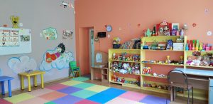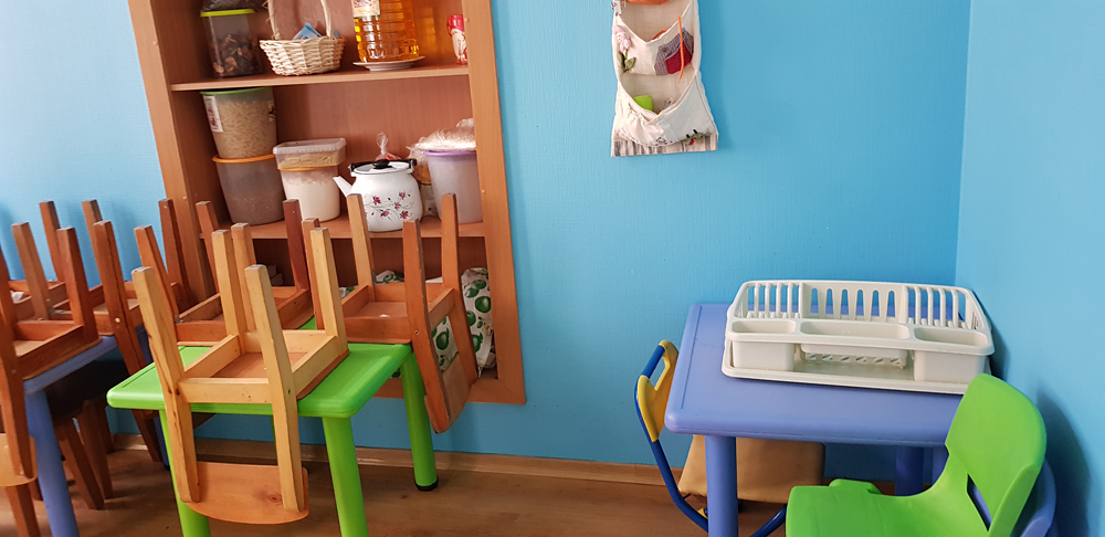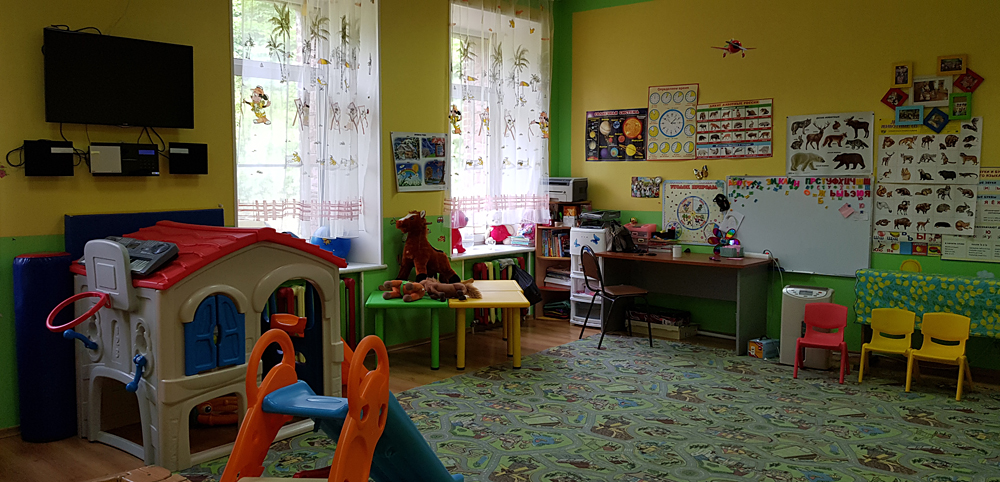 Отдельно стоящее здание – 220 кв. м. и своя закрытая площадка для прогулок с видом на море. Раздельные светлые помещения для групп, отдельная спальня и столовая.