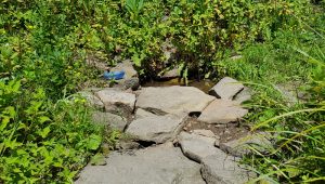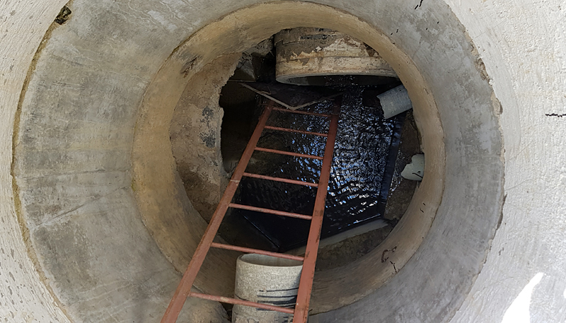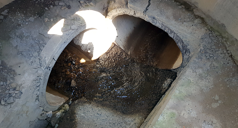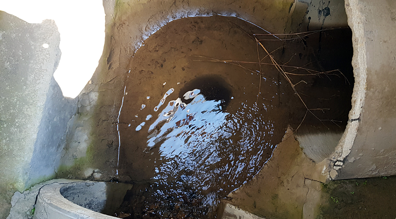 Сегодня был произведен осмотр всей ливневой канализации и колодцев от ручья и лужи у дома и до родника. Было видно, что по мере спуска по склону и приближению к домам поток воды в коллекторах увеличивается, но между последними двумя напротив резко мельчает. Это может означать, что где-то здесь нарушены трубы ливневой канализации.