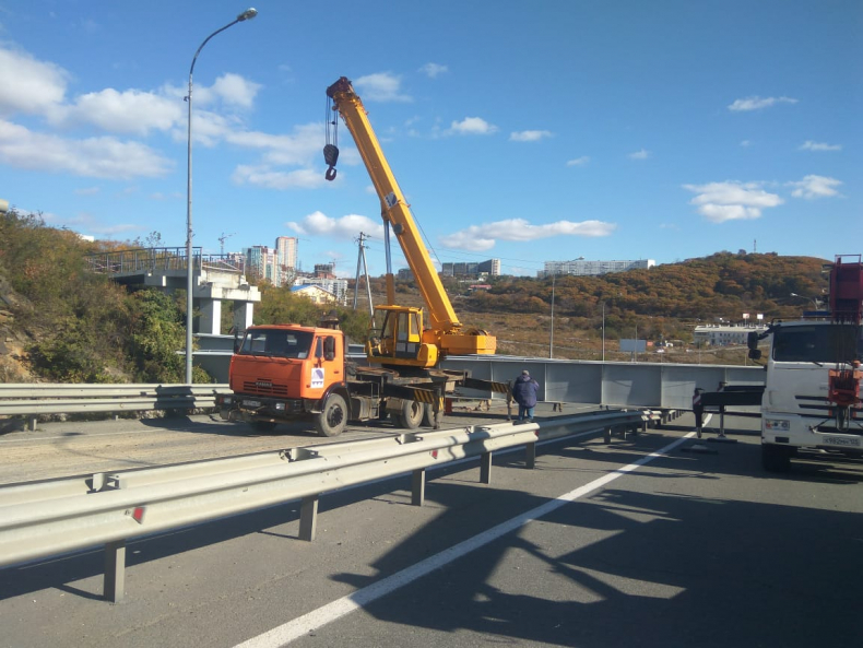 Пострадавших нет, а компания «Трансстроймеханизация» возместит ущерб, нанесенный городскому имуществу в результате дорожно-транспортного происшествия на объездной трассе Седанка – Патрокл. Специалисты управления дорог и благоустройства администрации Владивостока составляют акт об аварийной ситуации и считают сумму нанесённого ущерба.