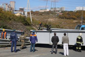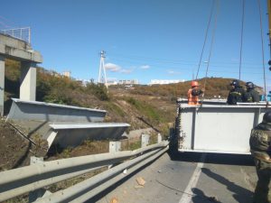 Ночью 16 октября, грузовой автомобиль, двигаясь по объездной трассе Седанка – Патрокл в районе улицы Басаргина задел конструкцию надземного пешеходного перехода. В результате железобетонная балка виадука упала на проезжую часть и полностью блокировала движение в обоих направлениях, сообщил заместитель главы администрации города Михаил Марков.