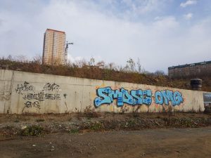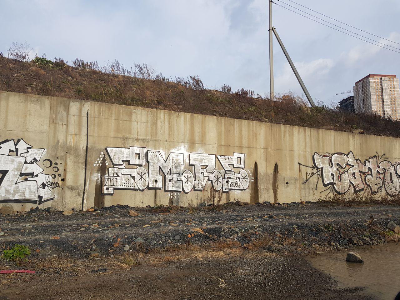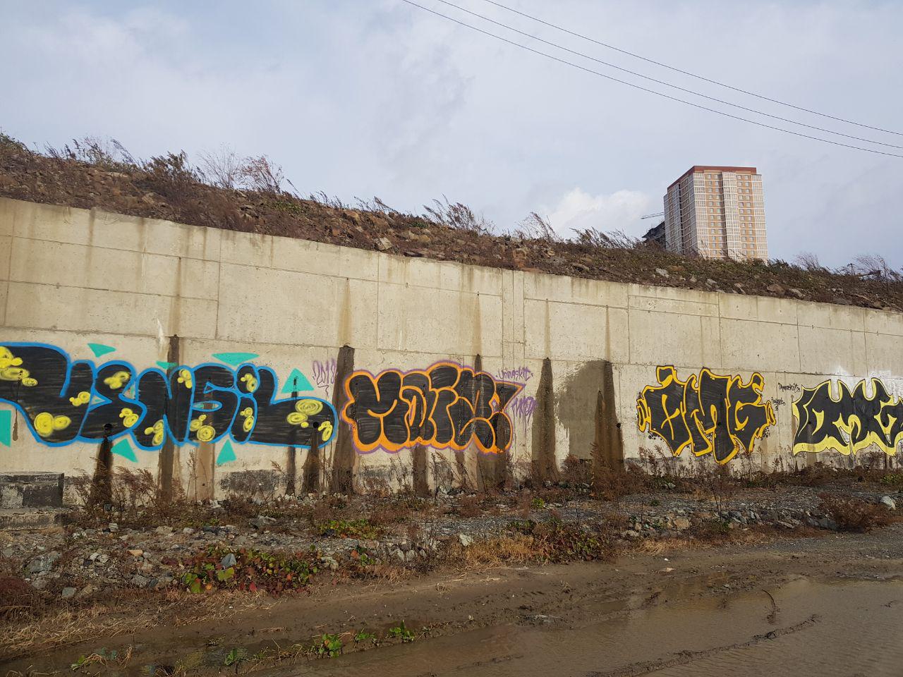 В прошлом году на опорной стенке в районе улицы Сочинской был нарисован маяк. В этом году была подана заявка управление поддержки гражданских инициатив администрации Владивостока на продолжение начатого. Предложено закрасить практически все имеющиеся опорные стенки района с продолжение концепции локальных образов флоры и фауны – чайки, осьминоги, кальмар, морские звезды, гребешок и т.д. Эти образы предлагается расположить на равных интервалах друг от друга, а сами интервалы заполнить волнообразными линиями с одноцветной закраской. В зависимости от финансовых возможностей можно закрасить один или несколько фрагментов опорной стенки.