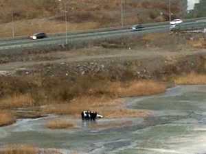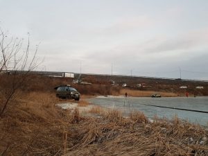 Занос стал не управляемым, да и лед не крепкий, а безымянное озеро никогда не замерзает полностью, т.к. северной стороны в него втекает ручей ливневой канализации с улиц, расположенных выше. А до июня прошлого года его еще и подогревала канализация.