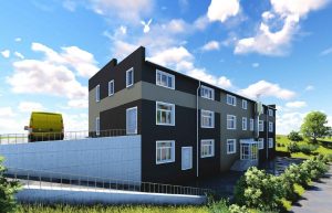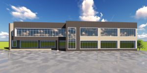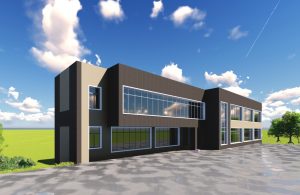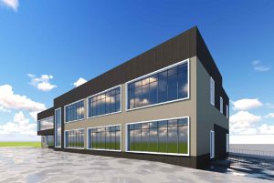 Основа здания – бетонно-металлический каркас. Фасадное остекление, фиброцементные панели Nichiha. Стройка остановилась на этапе кровли, случилась накладка с подрядчиками, было окончание сезона, все хорошие рабочие были заняты, затем пришли морозы и по технологическому процессу уже невозможно было её укладывать. Поэтому эти работы остановили до прихода весны. Но это не мешало заняться остеклением. Фасад уже куплен, проект сделан. В марте стройка продолжится полным ходом. Когда температура будет +5 и выше – займемся кровлей.