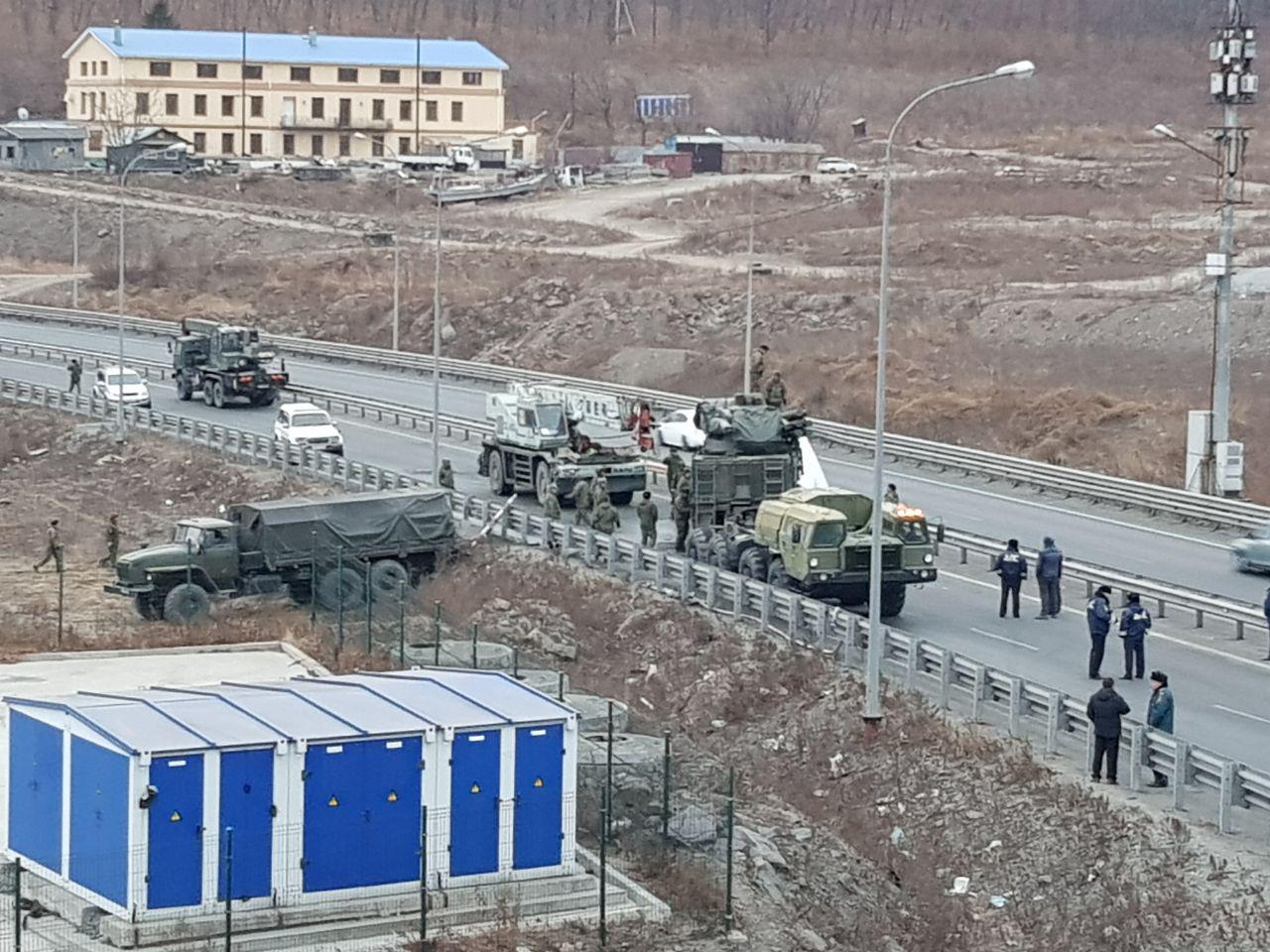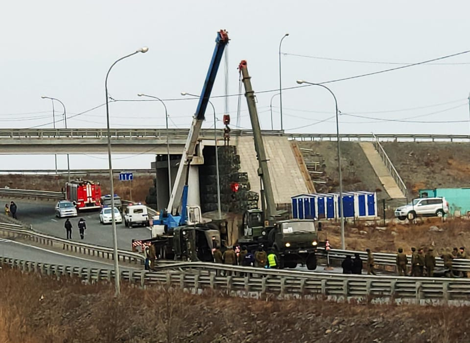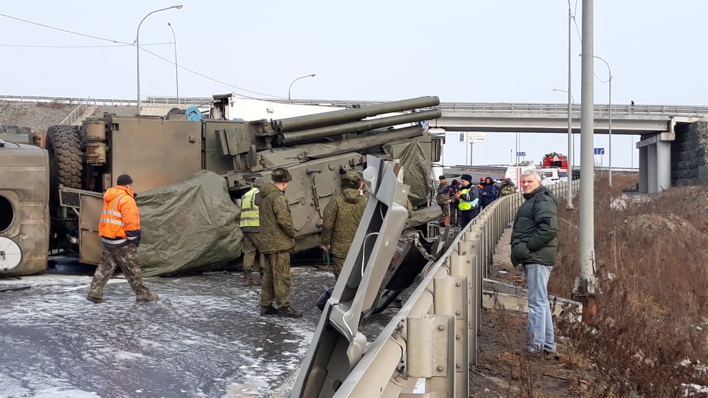В пресс-службе ТОФ подтвердили, что перевернувшейся машиной является ЗРПК “Панцирь-С”.