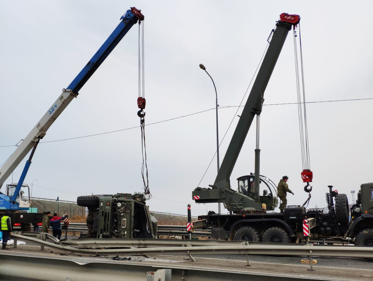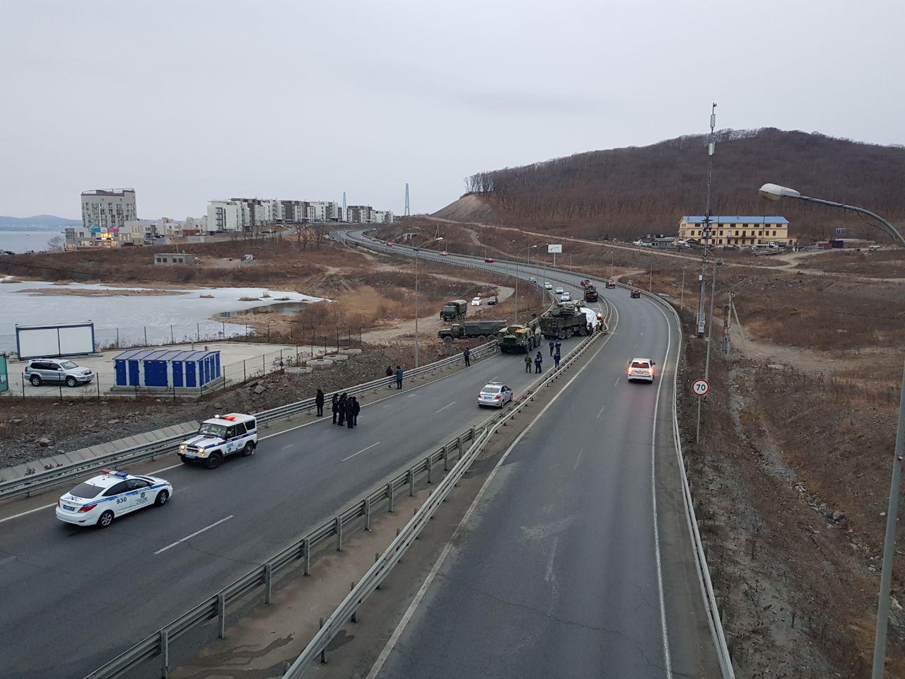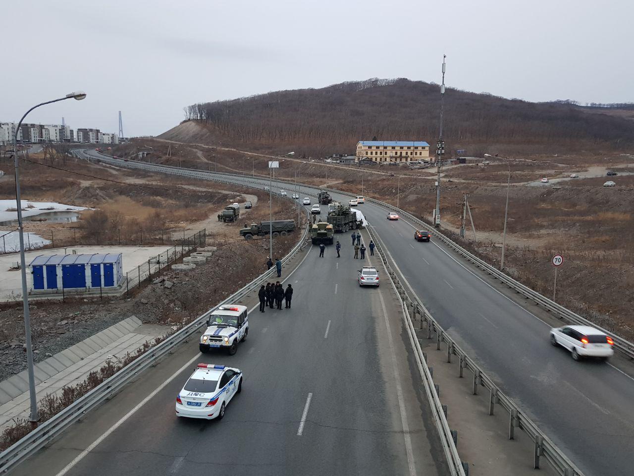 В результате ДТП оказалась полностью перекрыто движение со стороны улицы Катерной и острова Русский. Сейчас на месте работают военные и сотрудники ГИБДД.