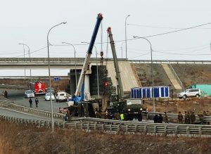 “При движении со стороны о. Русский в направлении бухты Патрокл произошло опрокидывание автомобиля КаМАЗ. Транспортное средство полностью блокировало движение в сторону бухты Патрокл и далее по объездной трассе в направлении Седанки. На месте происшествия работает наряд дорожно-патрульной службы Госавтоинспекции”, — говорится в сообщении Госавтоинспекции.