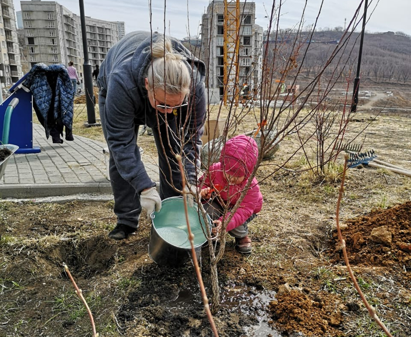 Основной темой субботника стала озеленение. Наши дома находятся на месте вырубленного леса и сейчас окружены пустыней с застывшей стройкой, поэтому в пределах своих земельных участков мы это исправляем. Не все из посаженных ранее растений прижились, поэтому такая работа будет продолжаться и впредь.