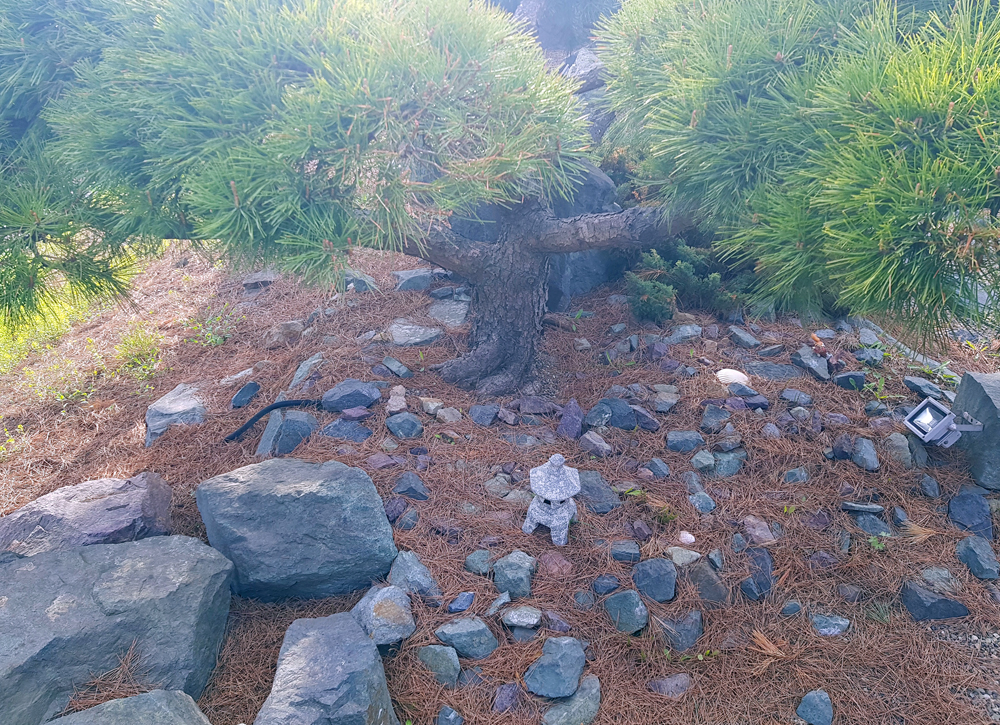 Терминов вообще много. У меня точно не сад камней, да и камней почти нет. А в японском саде камней как раз может не быть деревьев. Просто в той же Японии, где есть камни часто садят сосну – она хорошо смотрится и гармонизирует с камнями как и в природе.