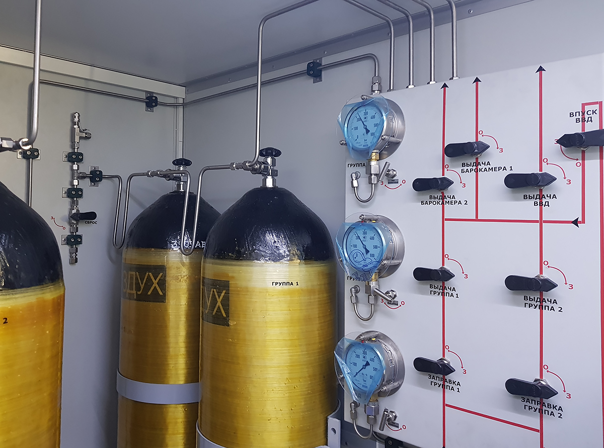 Продолжил экскурсию по базе Григорий Николаевич. Он показал водолазное оборудование и снаряжение – его хранение проходит при определенной температуре и влажности, которые обеспечивают его сохранность. Все помещения и траектории перемещения здесь продуманы для оперативного реагирования в случае наступления чрезвычайных происшествий.