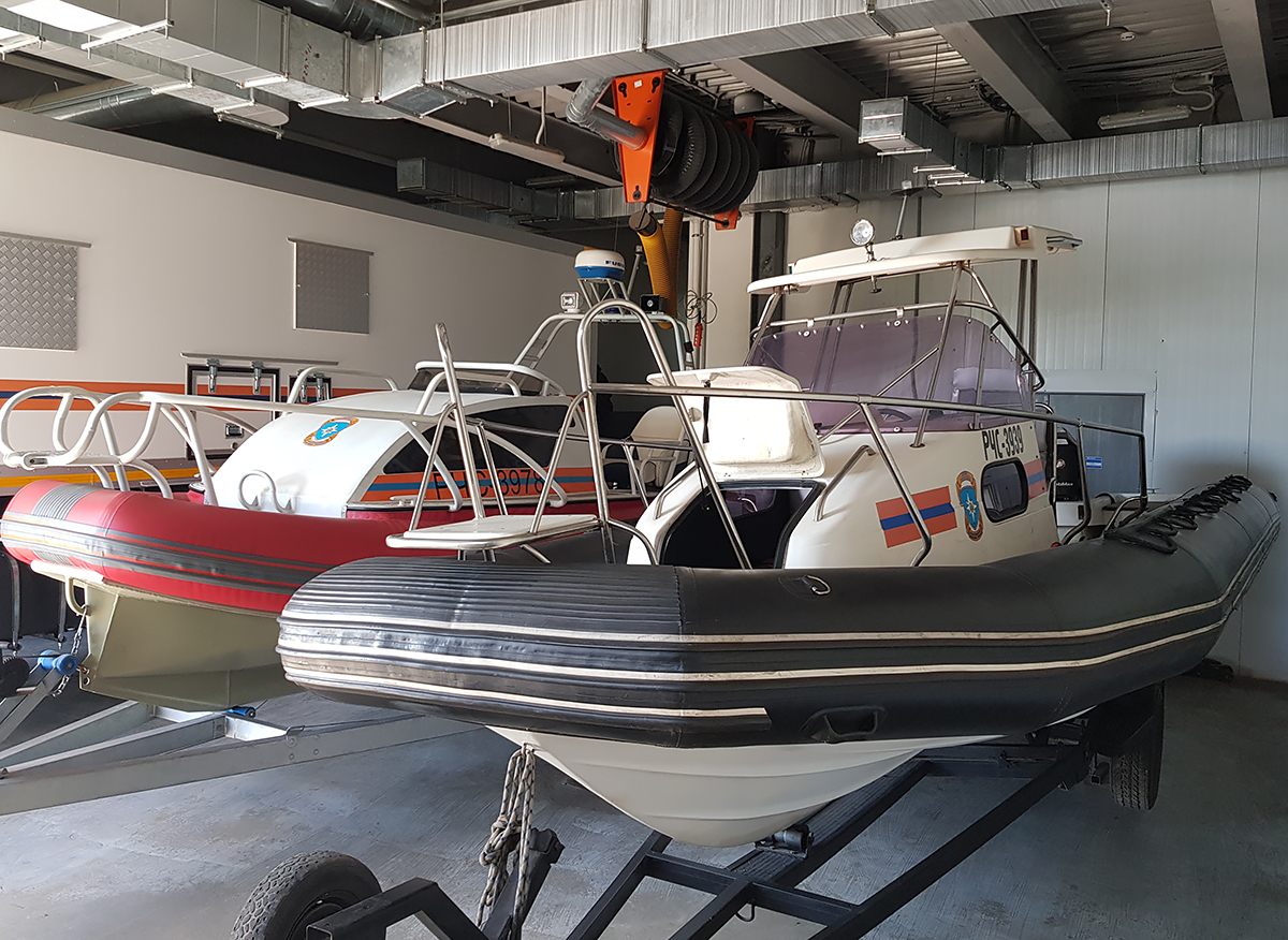 Плавсредства – МПСК “С.Тельнов”, КС-701, РИБ «Кальмар», РИБ «Стрингер», М-69, БЛ-820, надувные «Фаворит-420» – 2 шт, «Фаворит-470» – 2 шт., «Солар-350», гидроцикл «Yamaha-350″ – 2 шт, судно на воздушной подушке – СВП «Хивус -10», КВП «Арго».