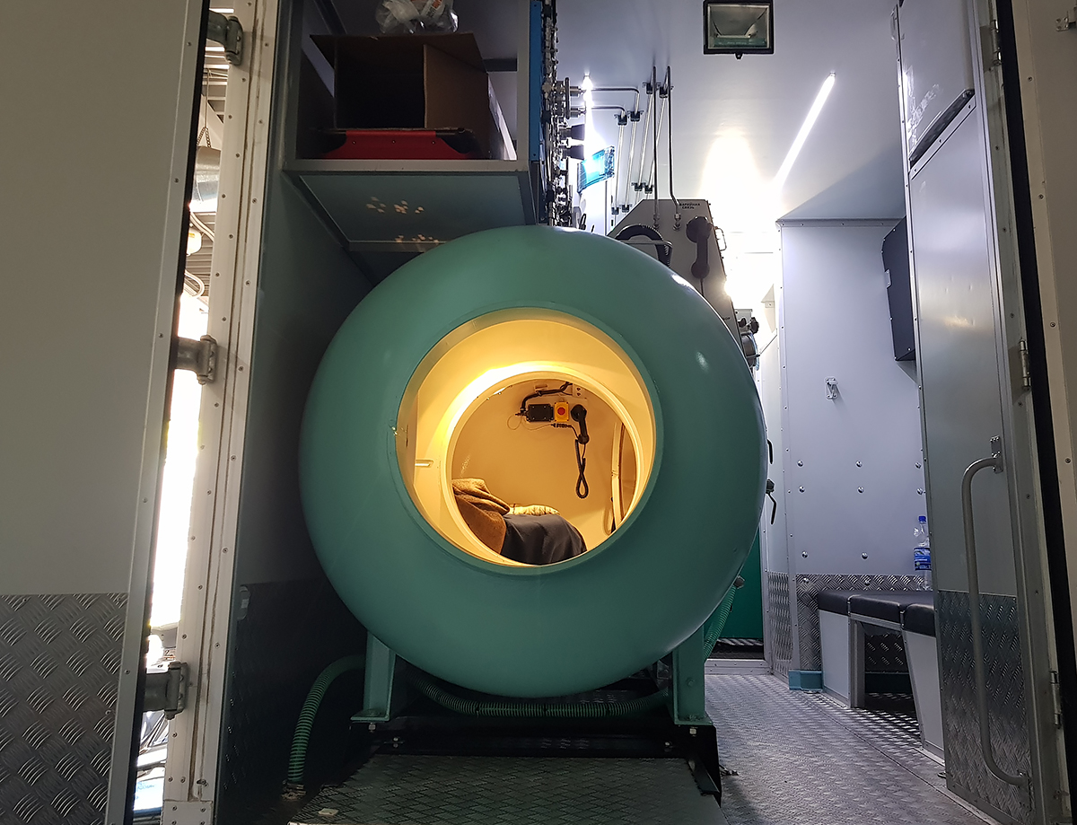 Водолазное снаряжение – ТНПА «Обзор-150», передвижной барокомплекс, камера подводная “Fish Eys”, гидролокатор бокового обзора “Tritech”.