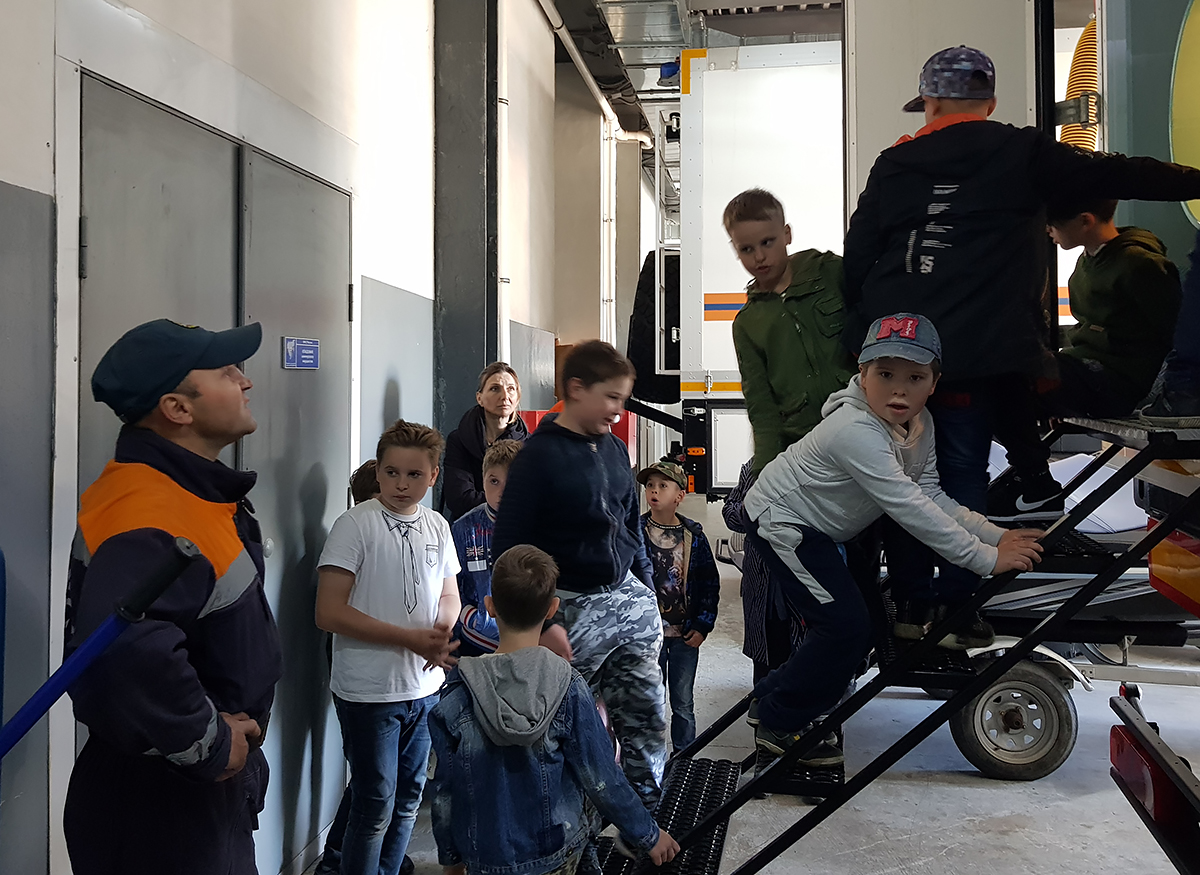 Действующий начальник отряда, Антон Сергеевич Шакиров, любезно согласился показать базу и рассказать об устройстве отряда. В этот же день здесь проходил открытый урок для первоклассников, детишки были просто в восторге. Оказывается, такие мероприятия со школами и детсадами здесь проходят регулярно, спасатели очень гостеприимны.