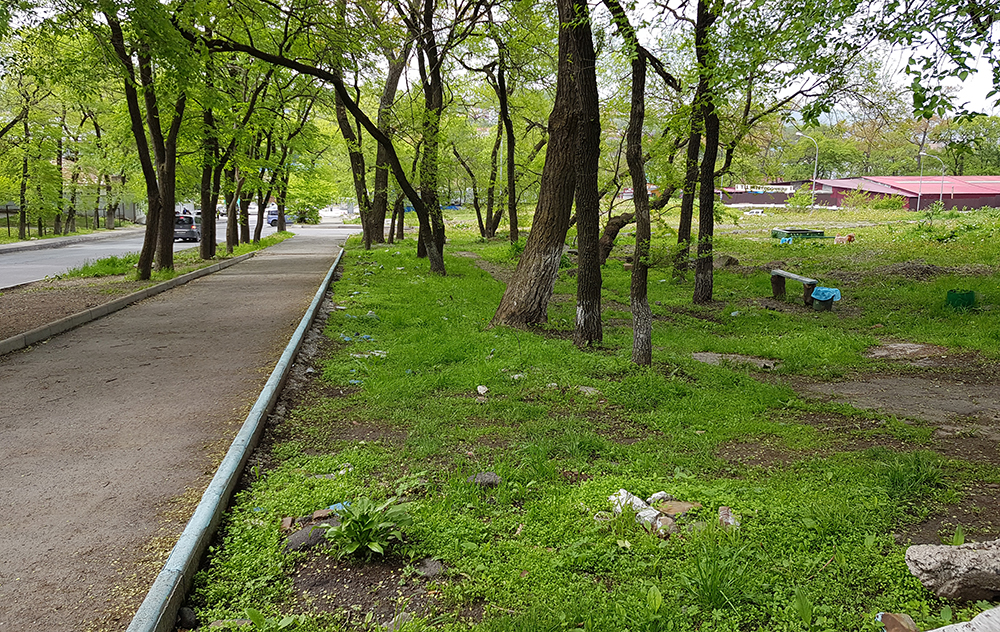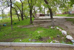 С 2012 года я “достаю” администрацию парками и скверами, которых в Первомайском районе всегда было мало. Со сквером на Черемуховой связанно моё детство. Здесь были карусели и качели, танцплощадка, много зелени. Вдоль всей улицы Черемуховой росли кустарники, защищая пешеходов от дороги. Затем коммунизм кончился и началось разграбление, все карусели и качели вывезли, растащили даже тротуарные бетонные плиты. Через несколько лет в парке поставили два детских игровых домика с горками, маленькую карусель и люди снова стали сюда приходить с детьми. Потом началась “стройка века” перед Саммитом АТЭС. Вывезли все из парка, мы спрашивали – куда и насколько. Строители отвечали, что после строительства трассы все вернут, но этого не случилось.