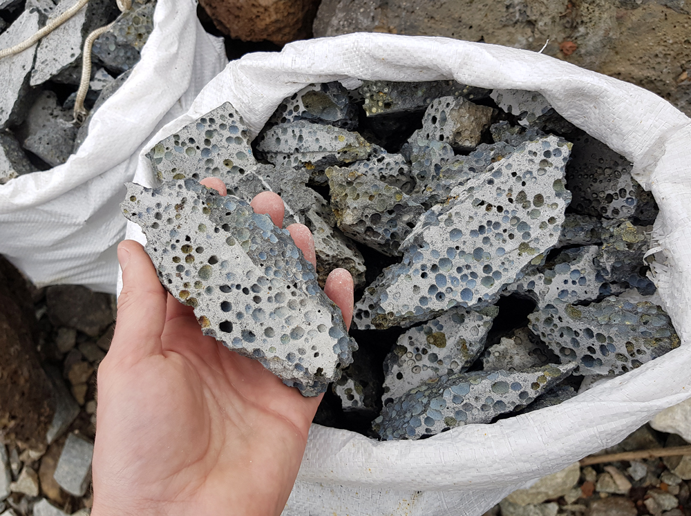 Мы также реализуем туф вулканический. Он у нас в крае встречается часто, иногда его случайно находят в огороде или при строительстве. Кто-то целенаправленно ищет такие камни в лесу рядом с вулканами – накидали грузовичок 3 тонны и продают у обочины. У нас объемы крупнее и если клиент запросит хоть 50 тонн, то через пару недель заказ будет готов.