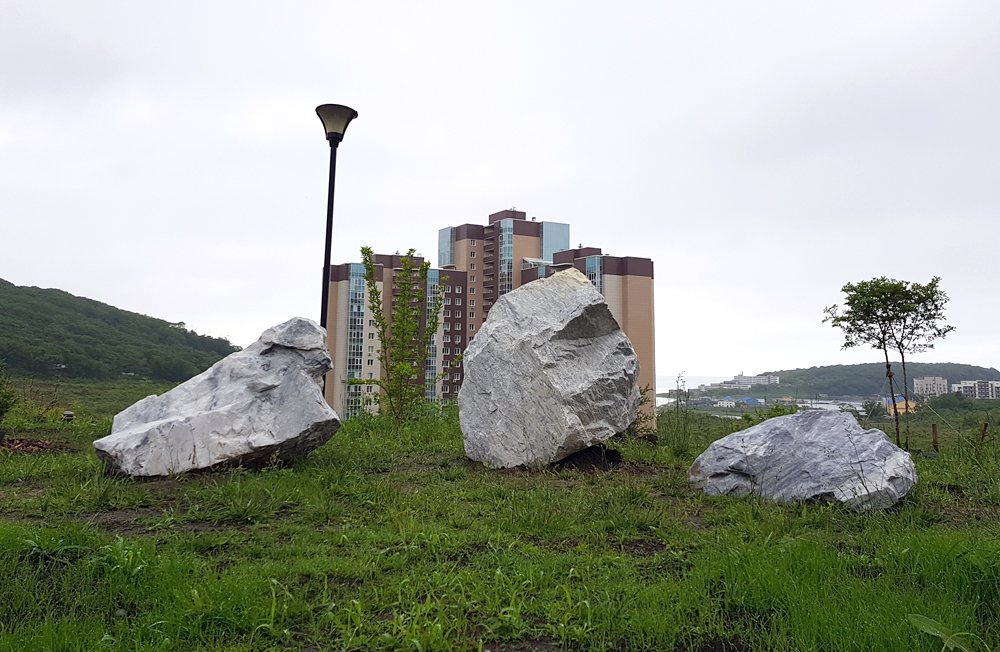 Азиз: Из декоративных камней на сегодняшний день в Приморском крае в промышленных масштабах добывается только мрамор для экспорта и для реализации на местном рынке. Оттенки – белый, серый, голубой. Местный мрамор уступает по белизне ангарскому, но тоже выглядит эффектно. Глыбы из такого мрамора приехали к вам на Сочинскую.