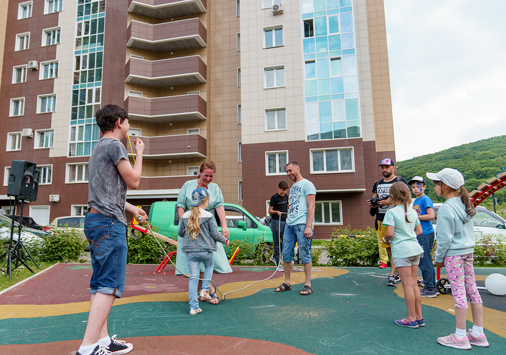 Ресторан чайхона “Хлопок” и бургерная-бар DAB открылись в “Калина Молл” и дарят соседям подарки! 8 июля во дворе Сочинской 15 они устроили праздник двора, в программе были подарки, аква-грим для детей и взрослых, диджей, конкурсы.