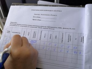 Валентина Подкопаева, начальник лаборатории по мониторингу загрязнений природных вод и почв Примгидромета: «Нефтепродукты, они, как правило, на пленке, но потом оседают на дно. И когда мы там берем донные отложения, то черные нефтеводороды».