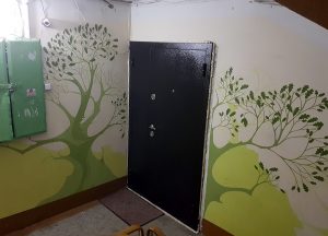 Жители преклонного возраста оценят наличие крючка или полочки для сумок. Обязательный минимум приличного подъезда – автодоводчик, а также упоры чтобы дверь не ударялась и откидной упор фиксации открытой двери. На Русской 57к эти два вида упора реализовали в единой конструкции.