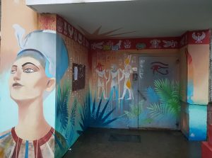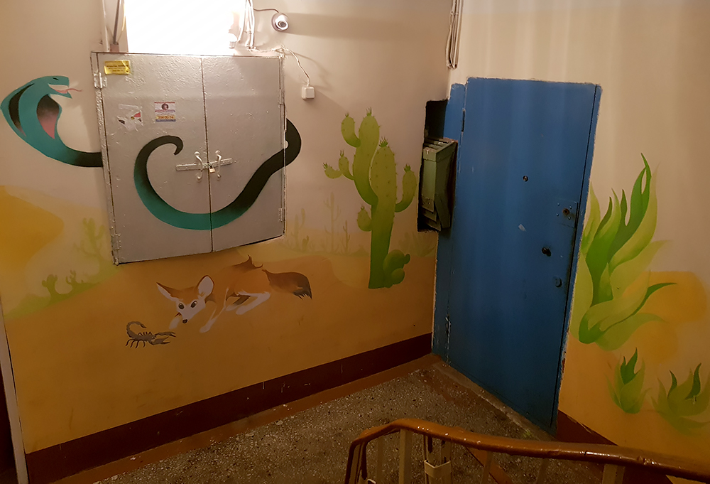От традиционного уныния панельного дома 5 лет назад решили на Нейбута 63, здесь каждый подъезд оформлен художником в своей тематике: тигр, леопард, море, город и (внезапно!) Египет.