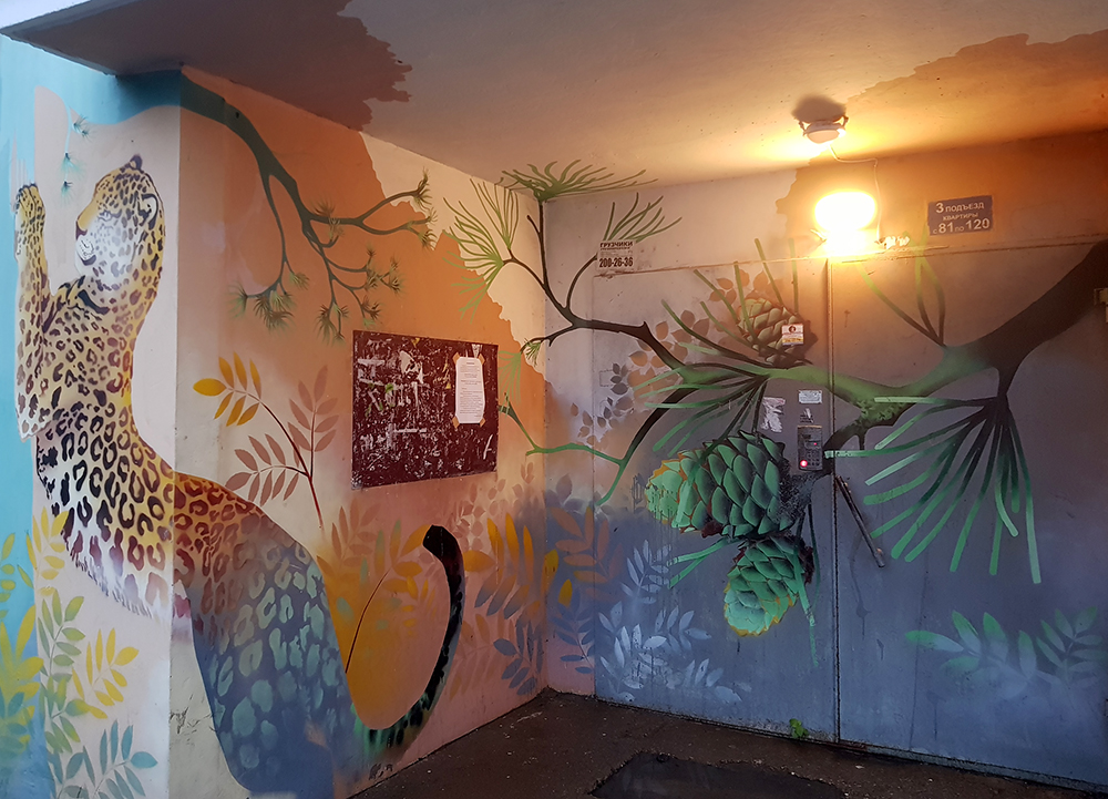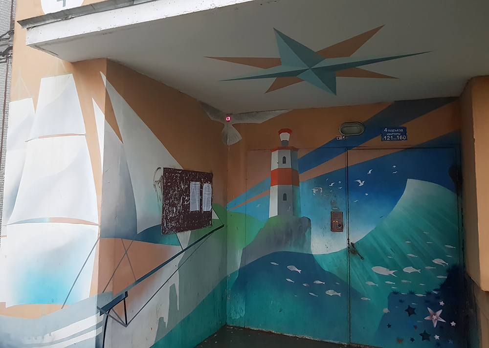 Как и аэрография у автомобиля такая покраска подъезда делает его уникальным, но и более дорогостоящим в плане ремонта. Множество ярких и оригинальных идей с меньшими затратами на реализацию можно найти в интернете (подборка здесь).