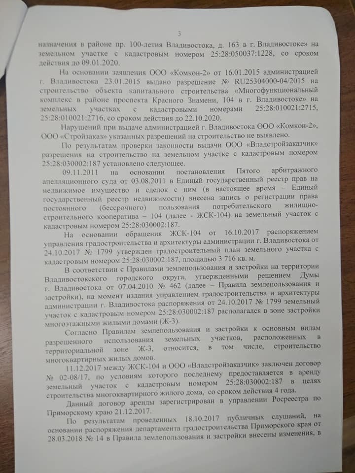 - Администрация Владивостока под действием коррупциогенного фактора встаёт на сторону застройщика, а жителям вешает лапшу на уши, уверяя их в абсолютной законности стройки. Доводы администрации нужно многократно перепроверять на законность.