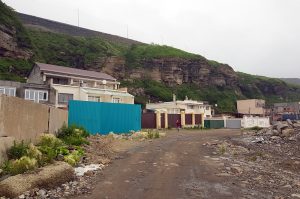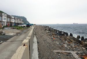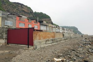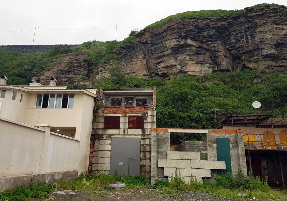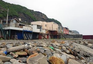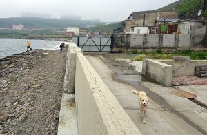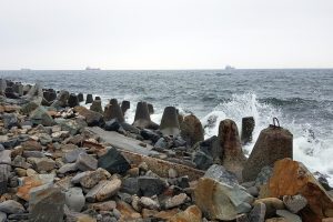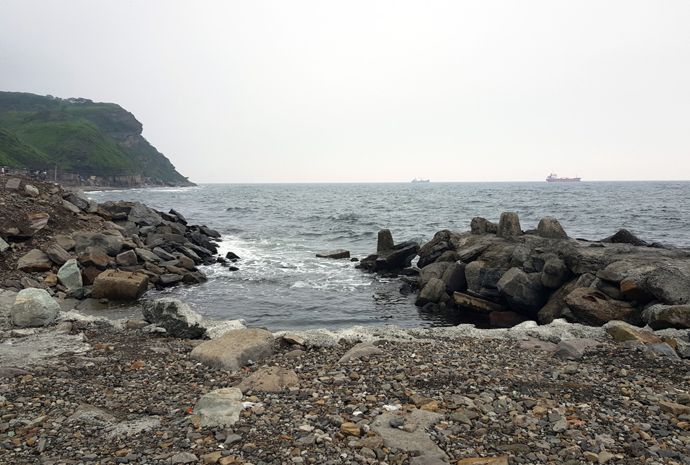 Местные жители ухитряются здесь ловить рыбу и даже купаться, несмотря на агрессивное побережье с каменными глыбами, кусками бетона и арматурой.
