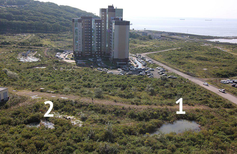 Пользователи социальной сети отмечают, что такое происходит крайне редко. А тем временем, тайфуны создают в микрорайоне новые пресные водоемы – в котлованах незавершенных строек. Жители района предлагают поименовать их, т.к. несмотря на признаки строительного оживления в районе именно эти территории пока не входят в число объектов, на которые бывший Дальспецстрой отвоевал права в суде и обносит сейчас забором с освещением.