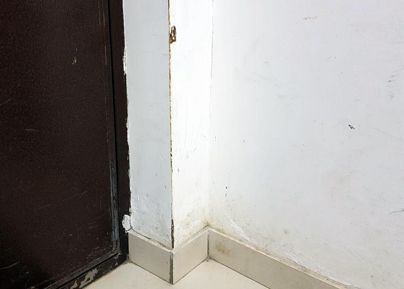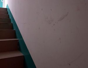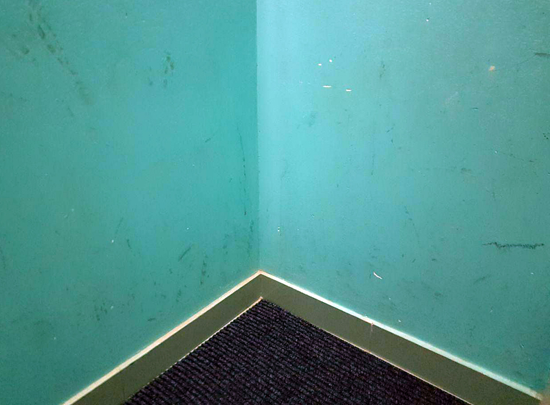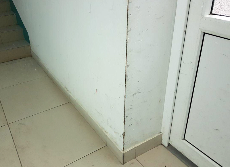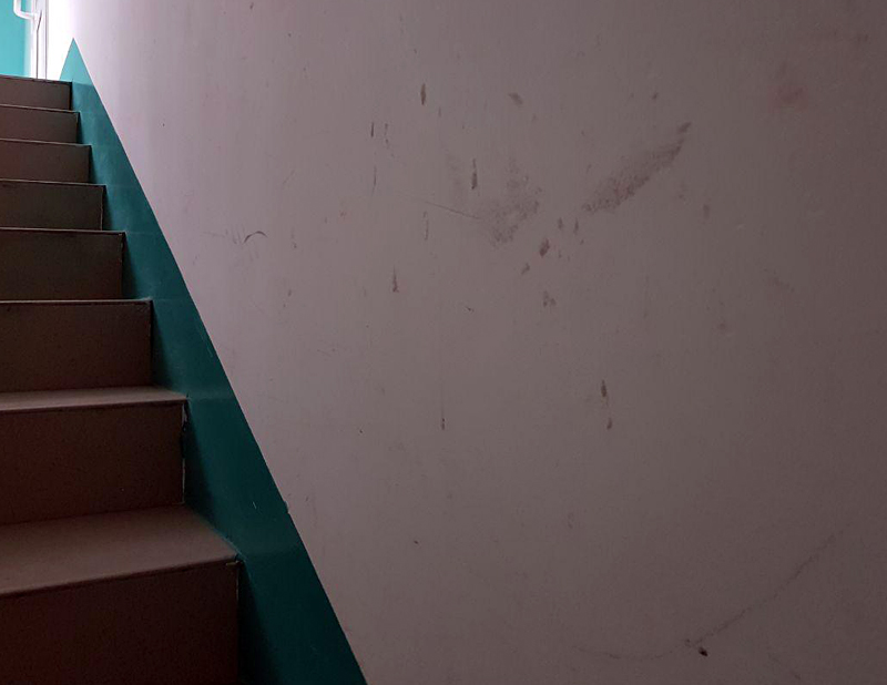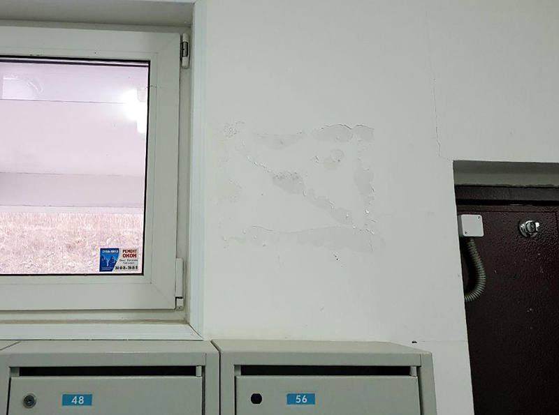 Ремонт холлов первых этажей выполнен застройщиком в ходе работ по гарантийным обязательствам. Рабочий “Ренессанс актив” устранял трещины, возникшие в ходе усадки дома за 3 года на месте стыков монолита и кирпичей и обновил покраску холлов, правда в итоге мы лишились красной полоски на стене с логотипом. Как выглядели холлы до ремонта: