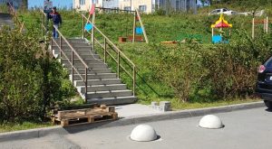 Установлены перила на лестнице, ведущей к домам № 1 и 3. Мы даже подали эти перила на конкурс “Доступная среда” и предложили дому №1 подать их пандус. Приз получил первый дом.