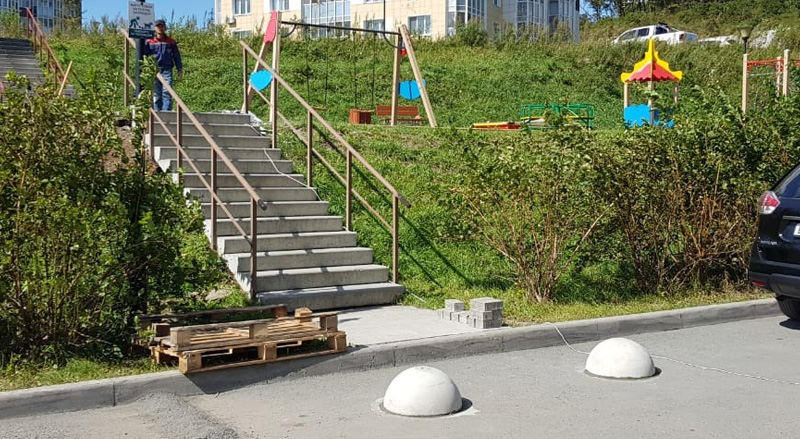 - Тропинка и лестница от детской площадки в сторону первого подъезда согласно эскизного проекта